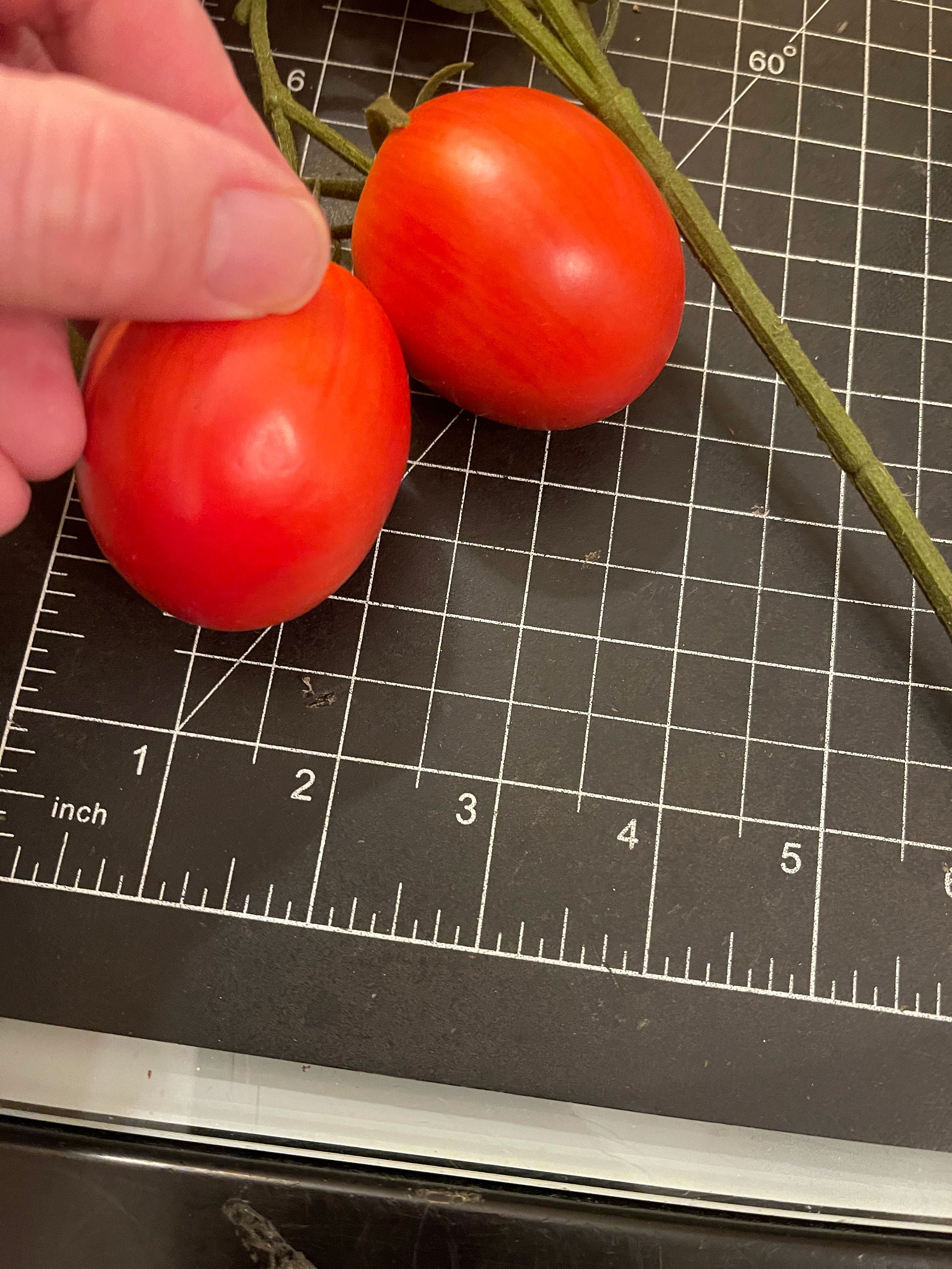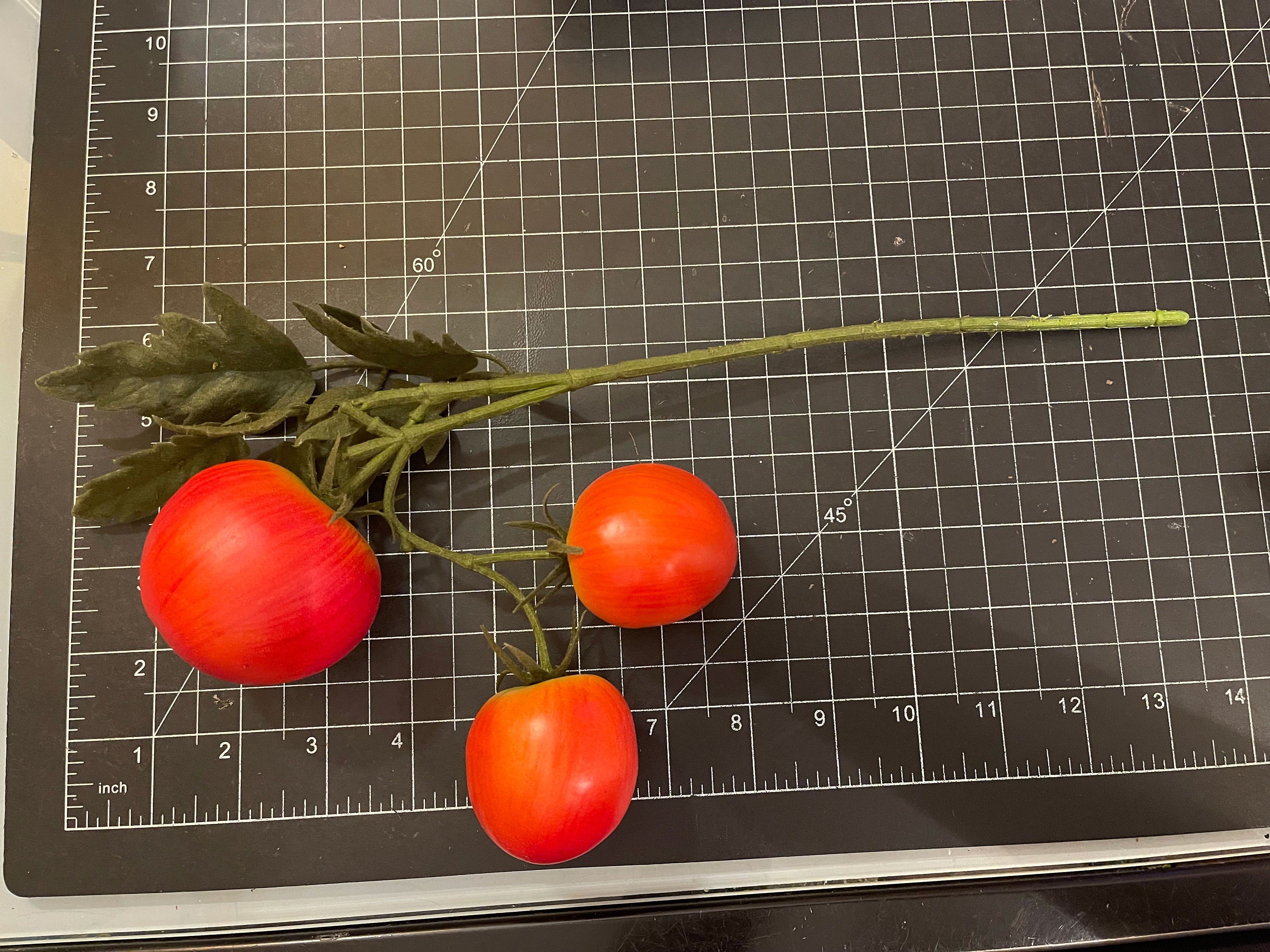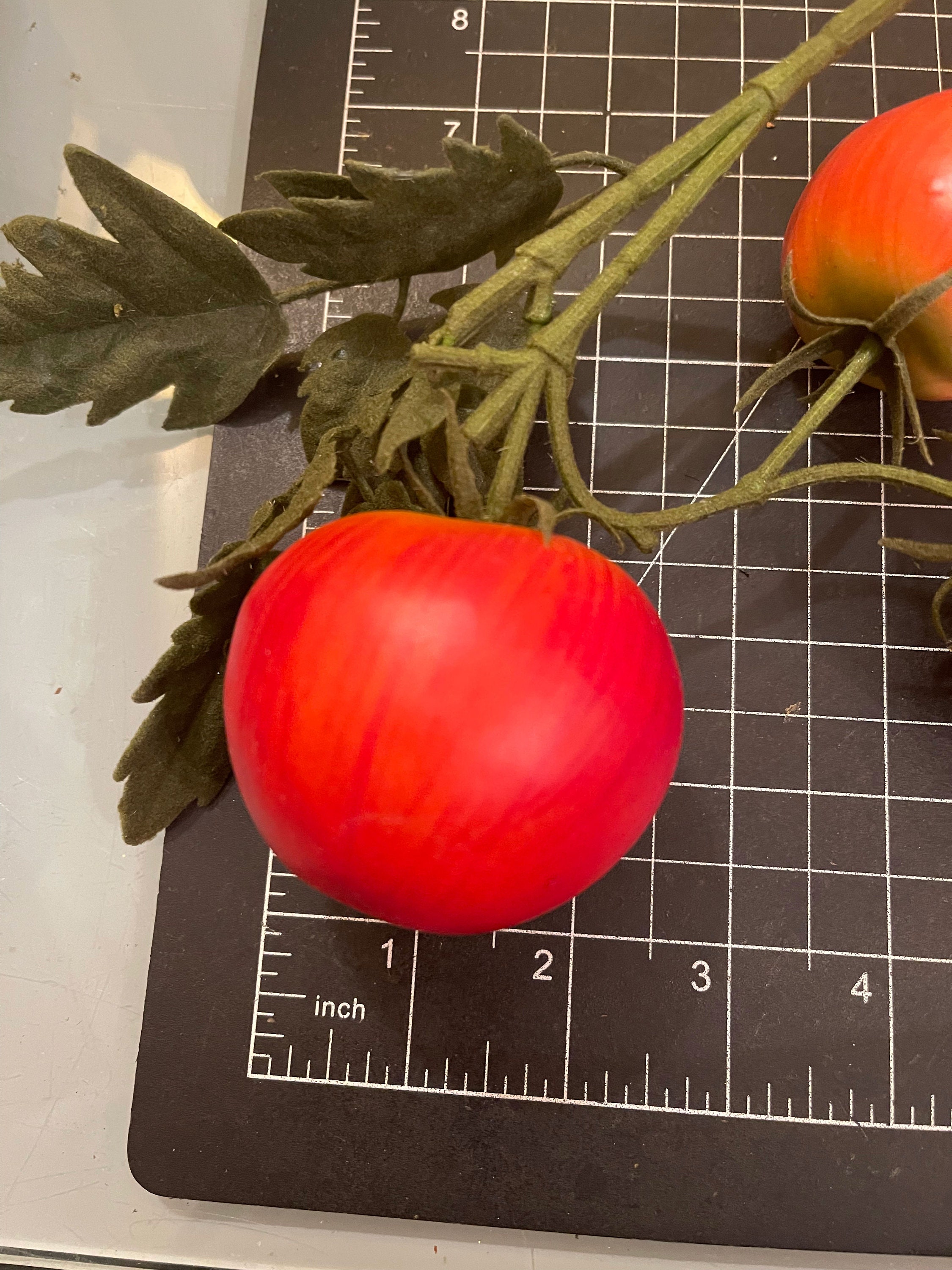 Add a fresh twist to your creation with this decorative Artificial Tomato Plant Floral Spray on stem featuring a green stem with 3 realistic artificial Red/Orange tomatoes for a refreshing natural look. This artificial plant requires no care or maintenance to stay beautiful at all times. Display in jars, vases or any other decorative container on a table to instantly refresh your interiors or create a one-of-a-kind DIY creation such as a wreath or garland!