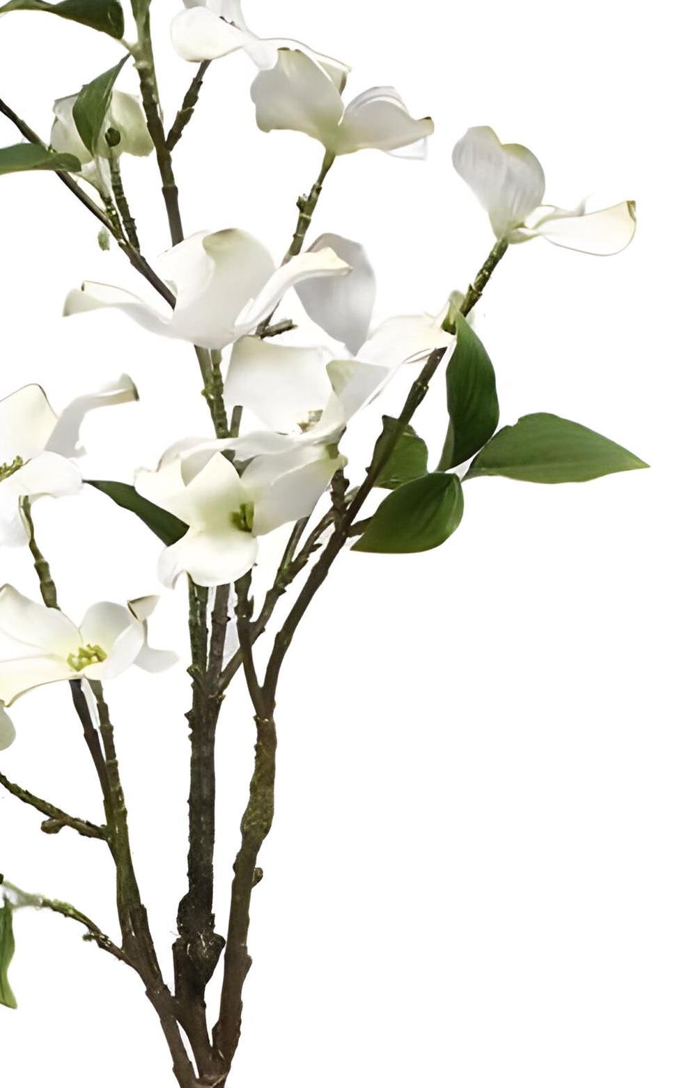 The Dogwood flower is a symbol of rebirth, resurrection and durability and embodies the idea of how we can endure various difficulties in life. This flower might seem gentle and small, but it can survive very hard conditions in real life. This artificial version features beautiful White flowers with some petals having Pink on the edges for a natural look in various shapes and sizes to emulate its appearance in nature and is simply beautiful! Use in a vase, basket, wreath or other DIY design.