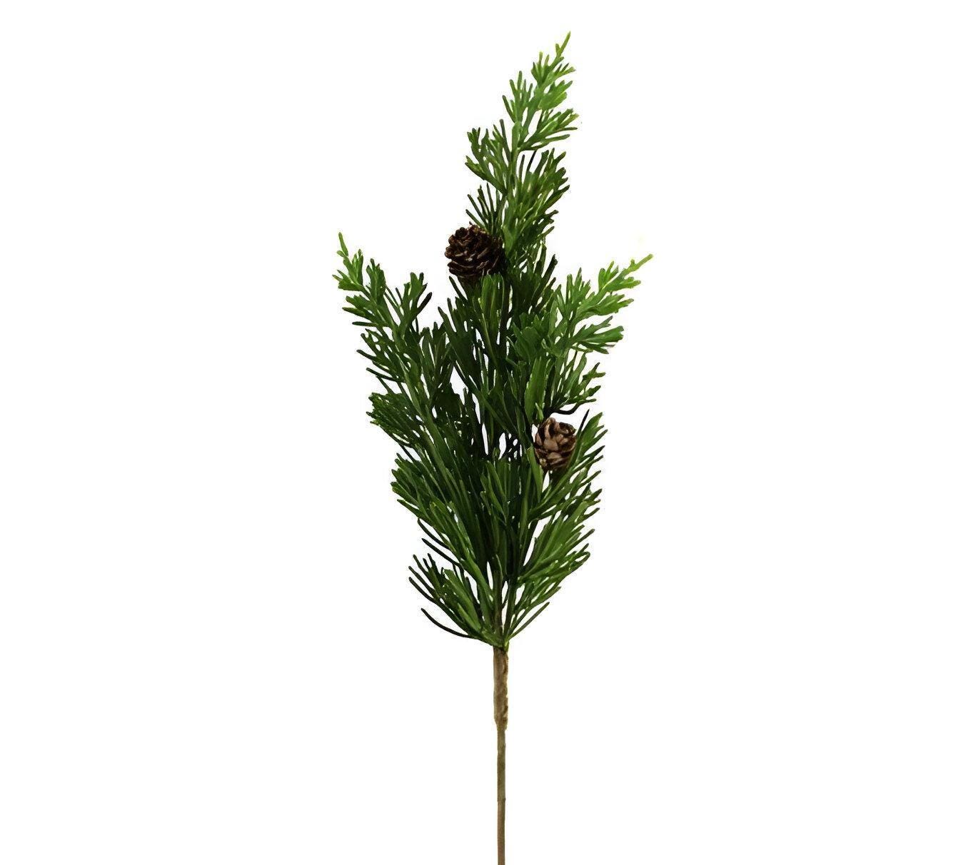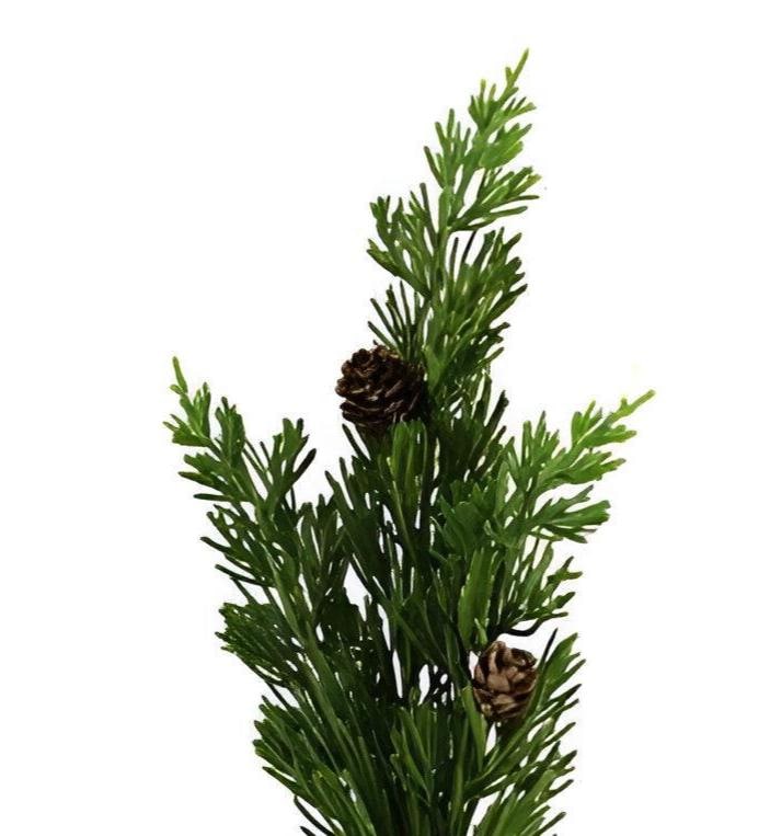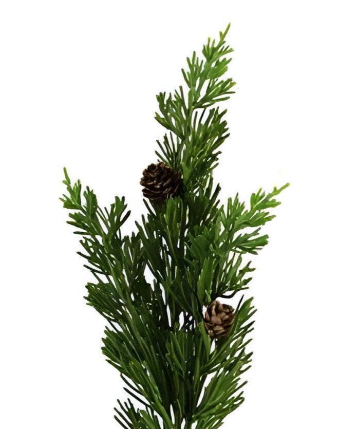 Add this charming Faux Cedar Stem to your decorative display to add some rustic flair to your Christmas decor without all the mess! It has a beautiful Green hue with stubby needles and two pinecones in the center. Use it to fill a decorative vase or pot or even as a wreath enhancement. Add it to other floral elements to give your winter decor or design depth and volume!