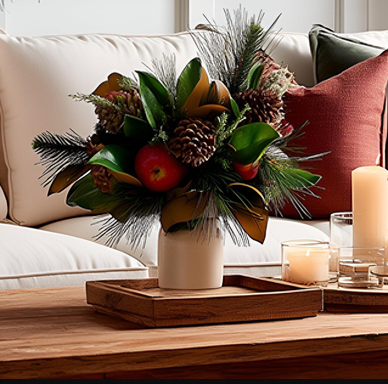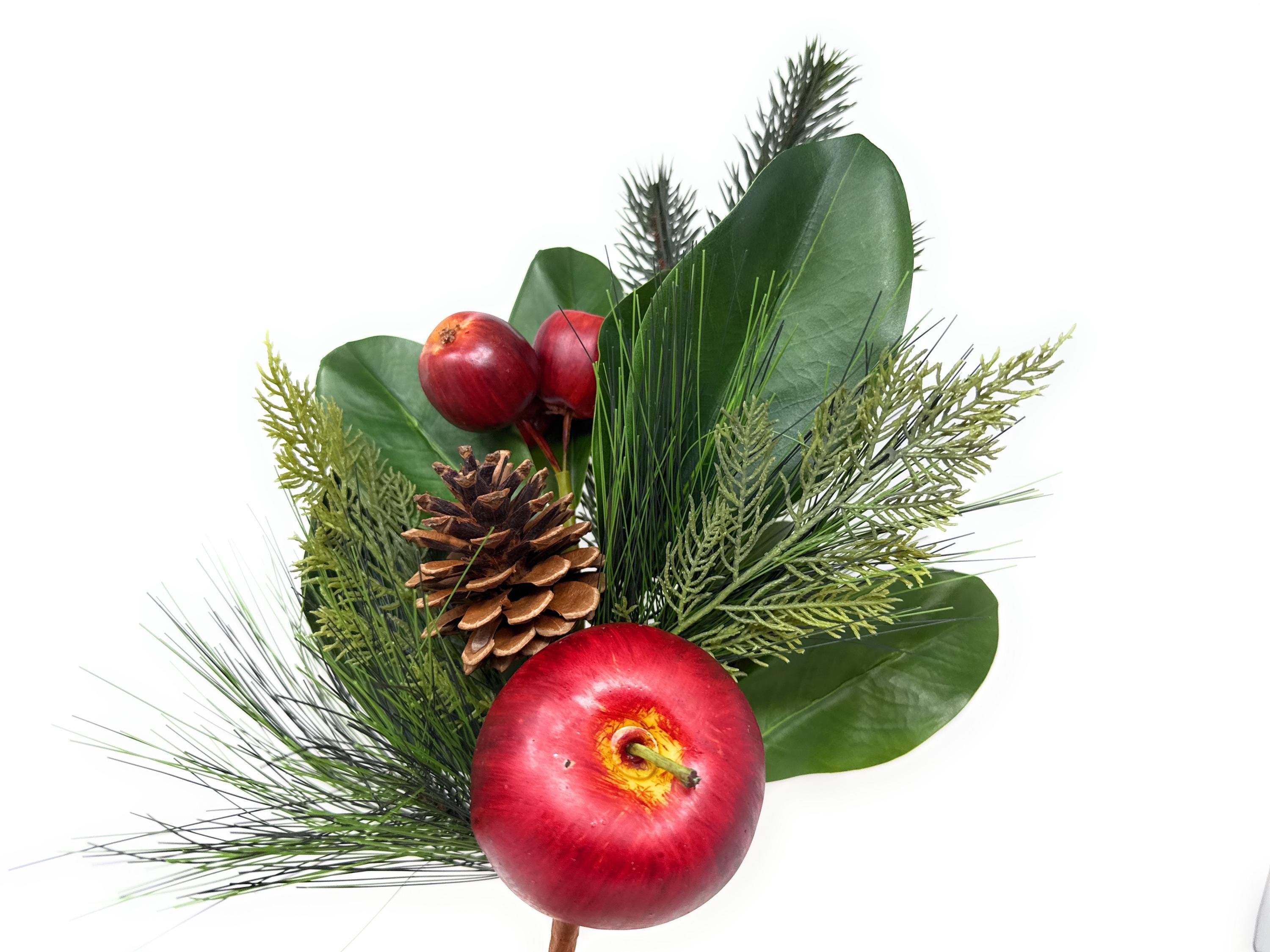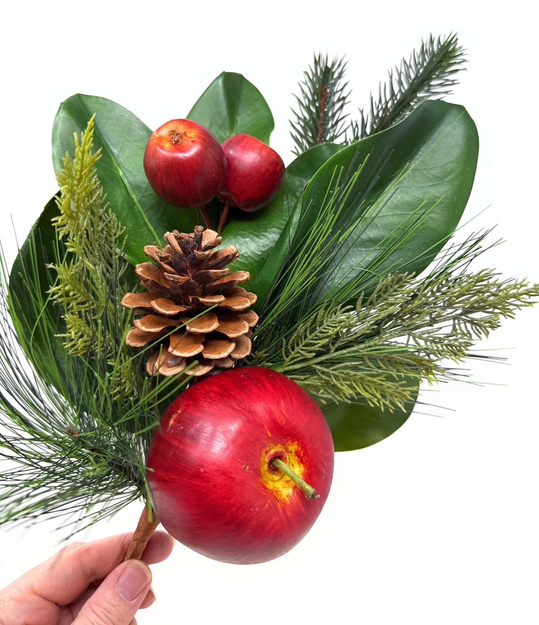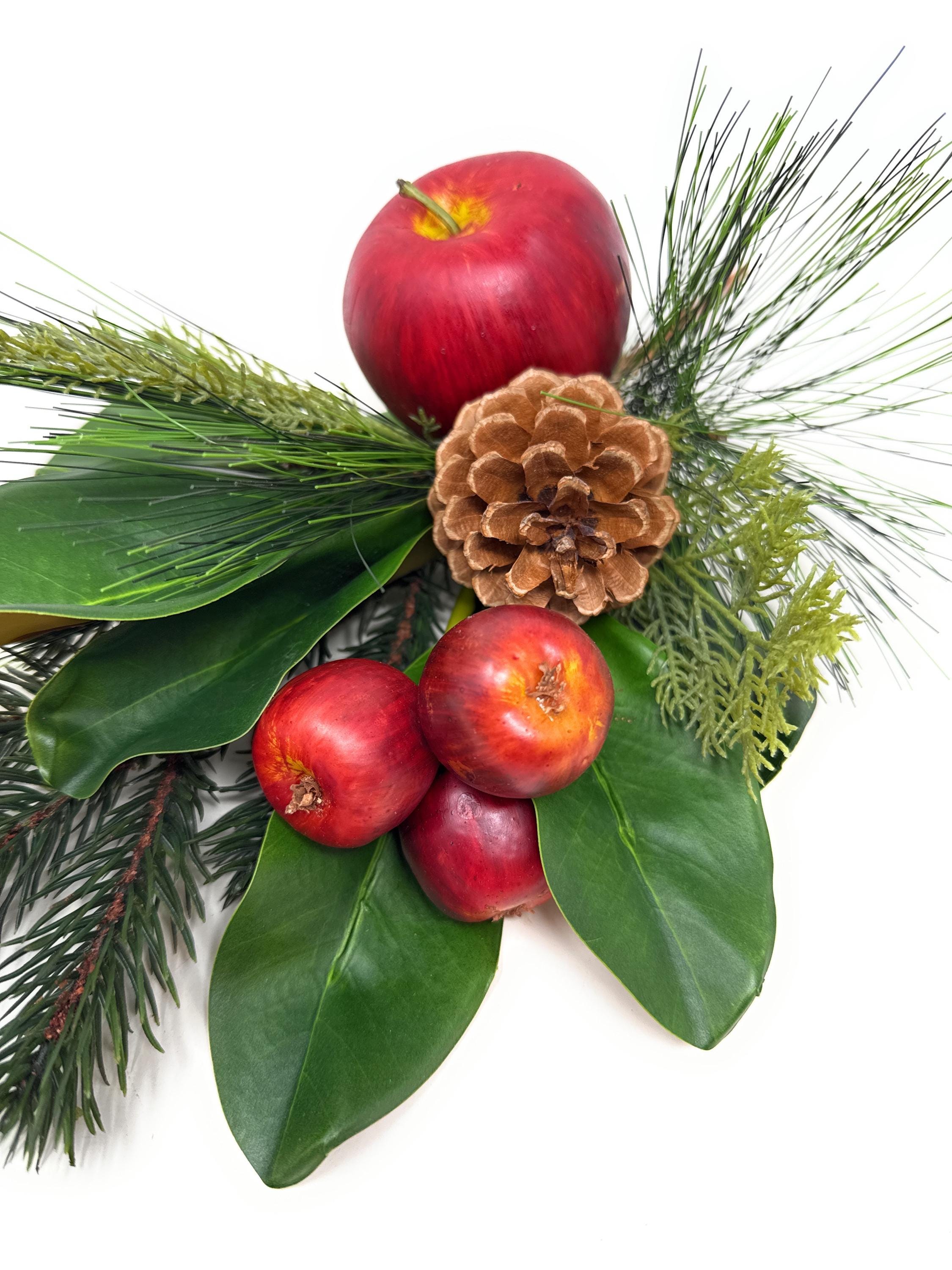Celebrate the season with these faux Magnolia and Apple Christmas stems, the perfect accent for your holiday and winter decor. Featuring glossy Magnolia leaves, Red apples, and festive greenery, these stems bring the warmth and charm of Christmas into your home.