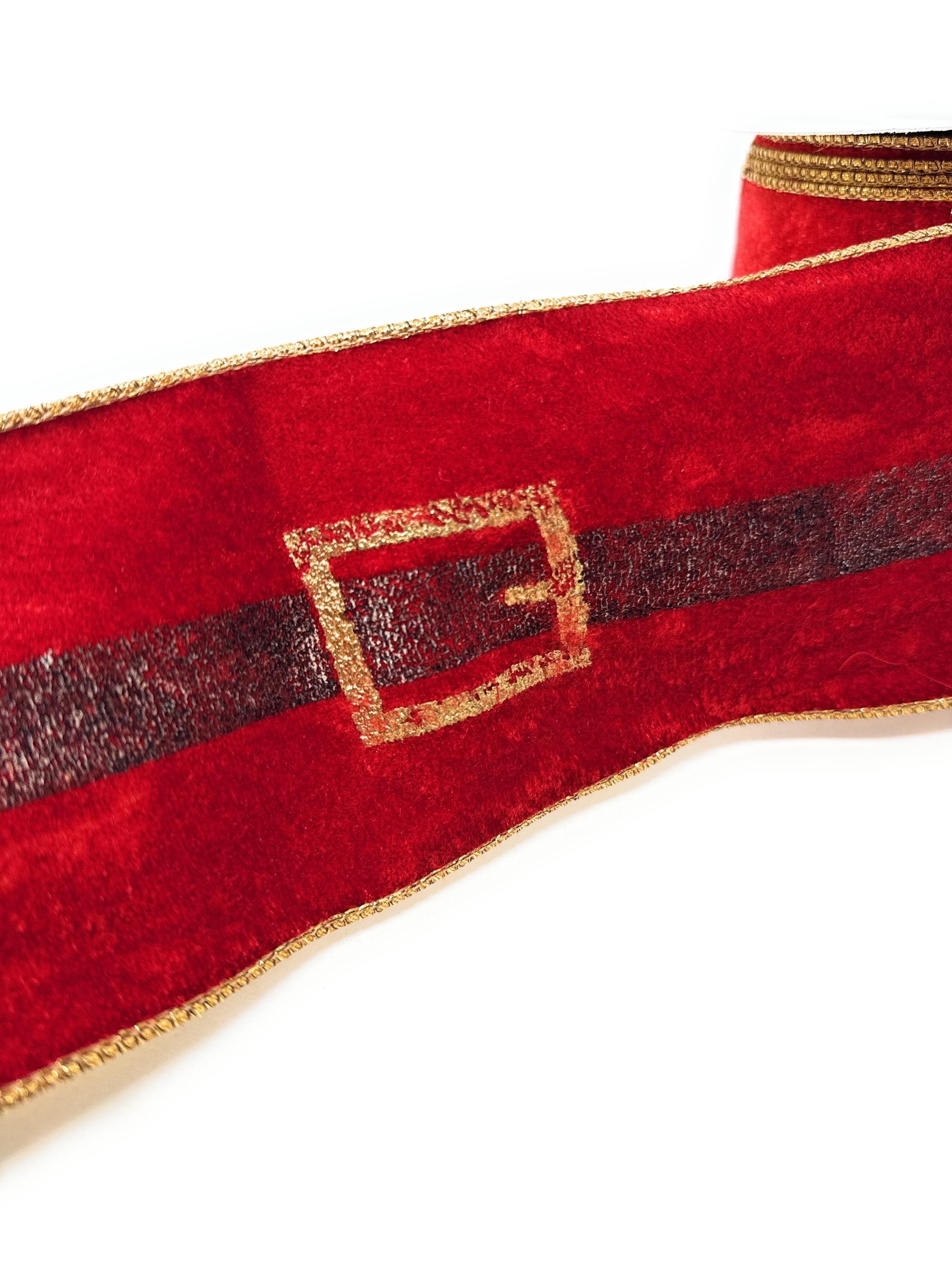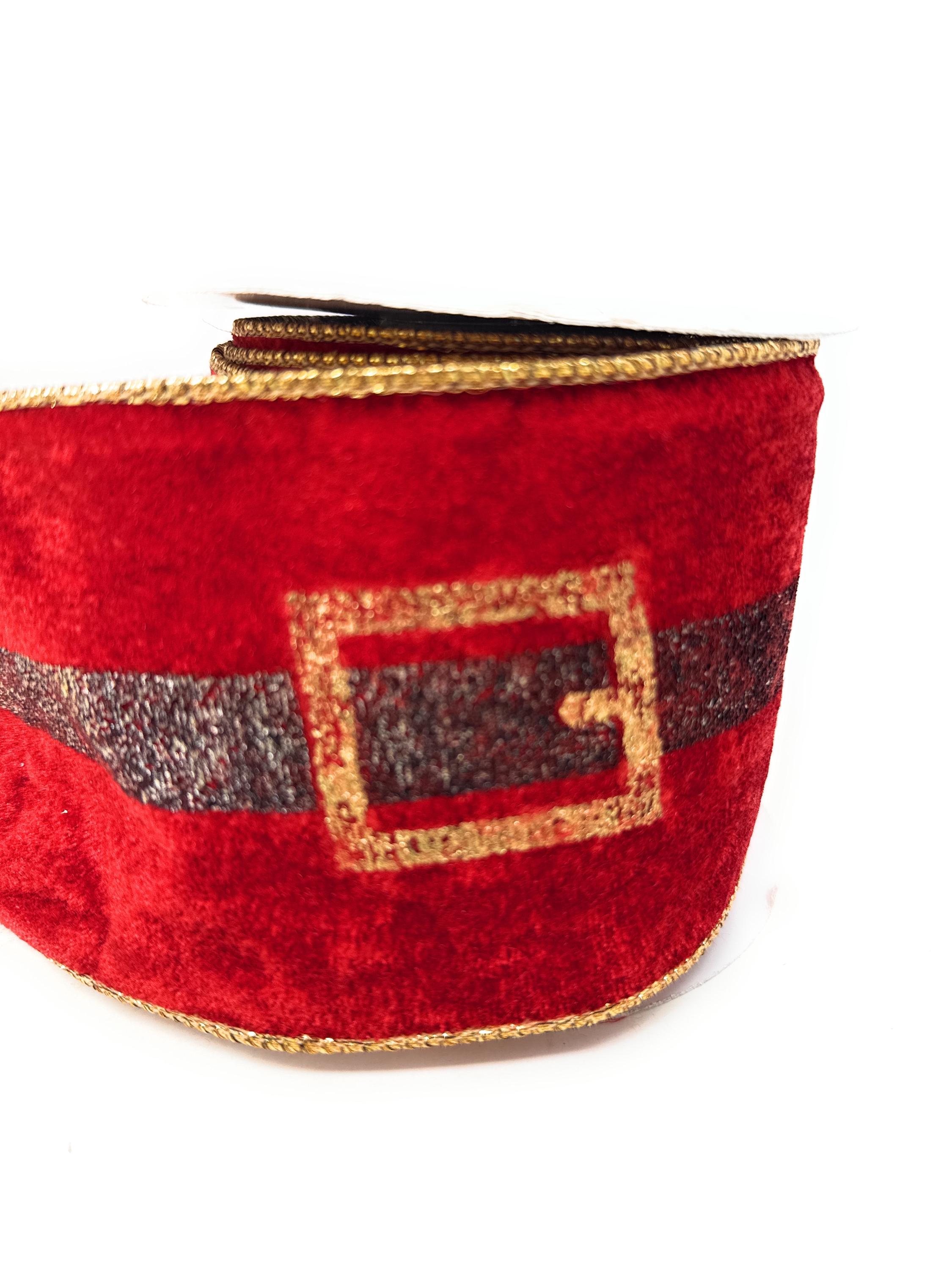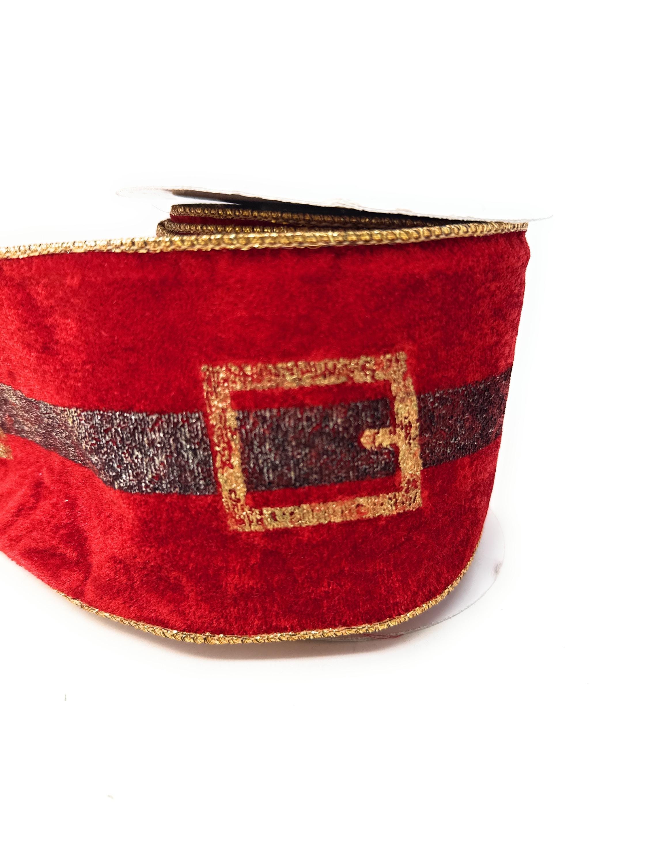This Santa's Belt Ribbon is wired and is made of rich Red velvet in 4" Wide x 10 Yard roll. It's single sided velvet and has a beautiful lavish feel and is perfect for gift packaging, floral arrangements, wreaths and bows. The possibilities are endless!