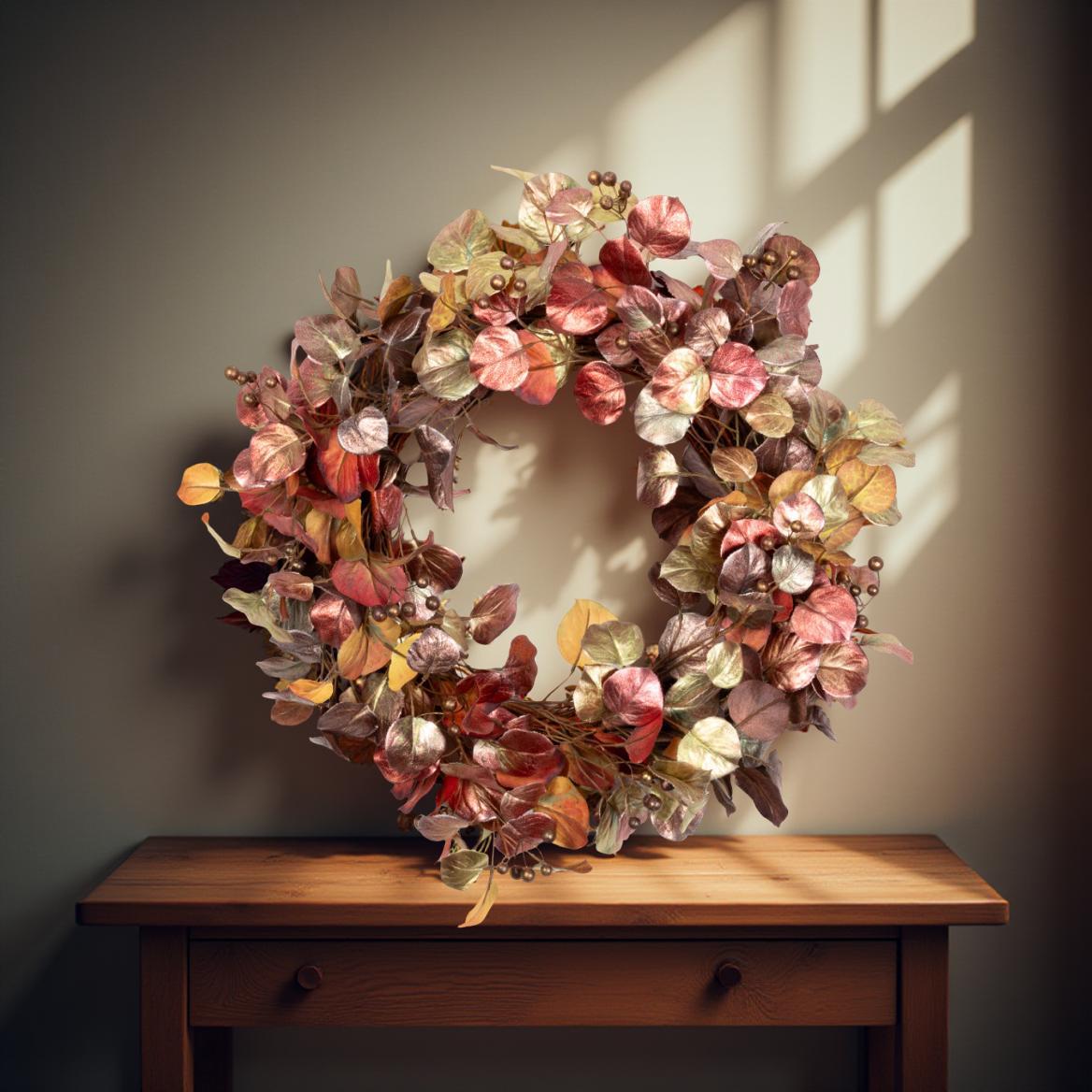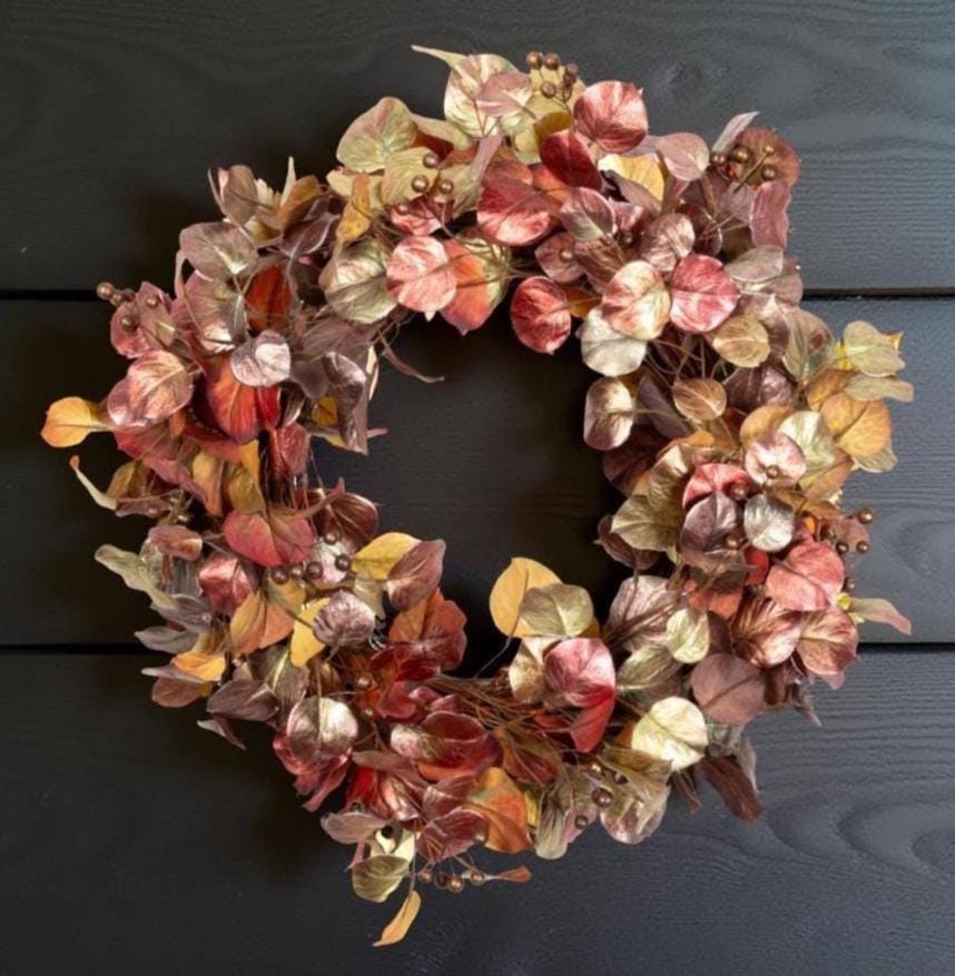 This Fall wreath will bring all of the warm Autumn feels into any space! It features an elegant blend of metallic leaves in rich shades of Brown, Gold and Copper, creating a stunning ombre effect that embodies the essence of Fall. Make a statement on a doors, wall, mantel, or even use as a table centerpiece. The metallic tones add a touch of elegance and it is versatile enough to work in a variety of decor from rustic to modern.