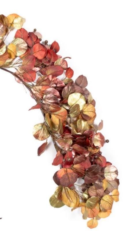 This faux Fall Ombre Metallic Leaf Garland in Gold Brown is perfect for Fall or for everyday elegant use! You could also use it as a table runner, part of a centerpiece or strip it apart to make DIY projects such as wreaths, swags or other home decor - there are so many possibilities!