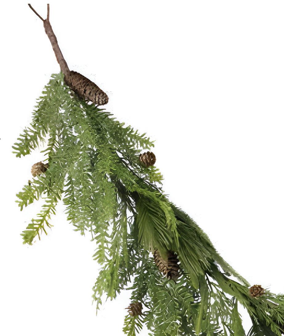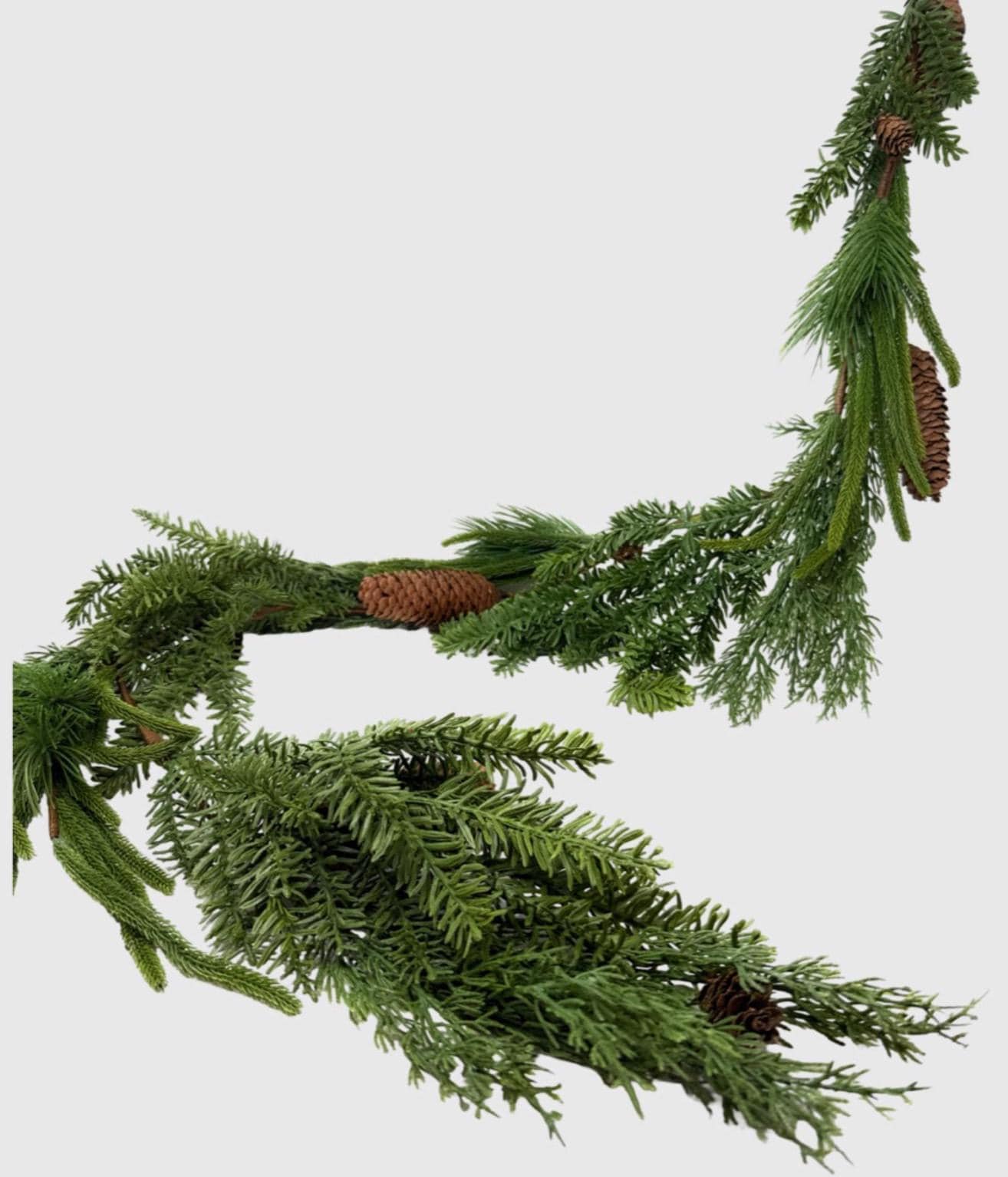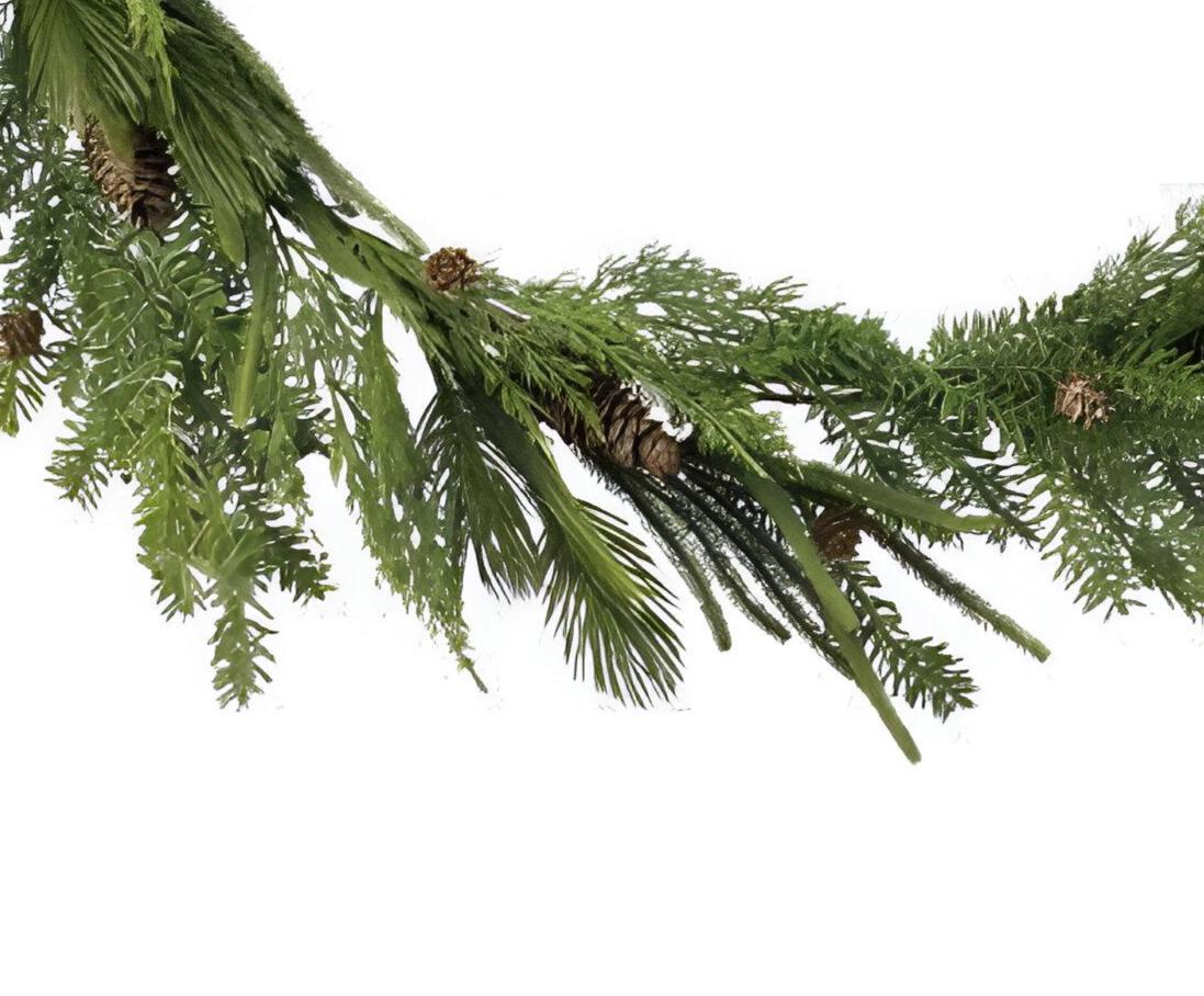 This is a mixed Christmas garland in 2 tone Green featuring Cedar, Juniper and Pine with Pinecone accents that has a very realistic look. You can drape needed over your mantel, stairs, doorway or use it as a table runner, as a part of your tablescape other DIY projects.