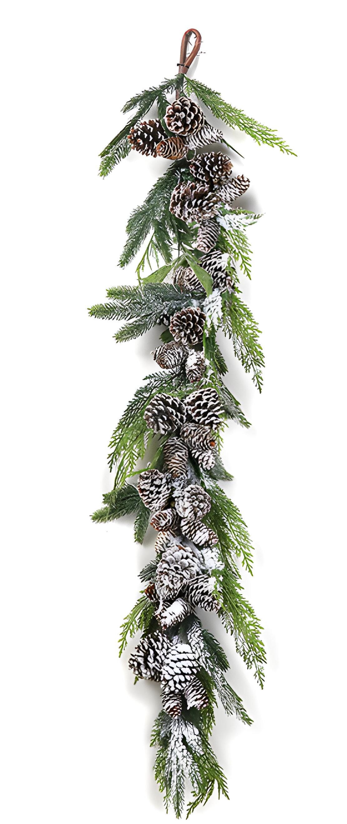 MEASUREMENTS: 51" Long - Garland will be collapsed for shipping and will require shaping/fluffing upon arrival. There will be some shedding of snowy accents when handling.