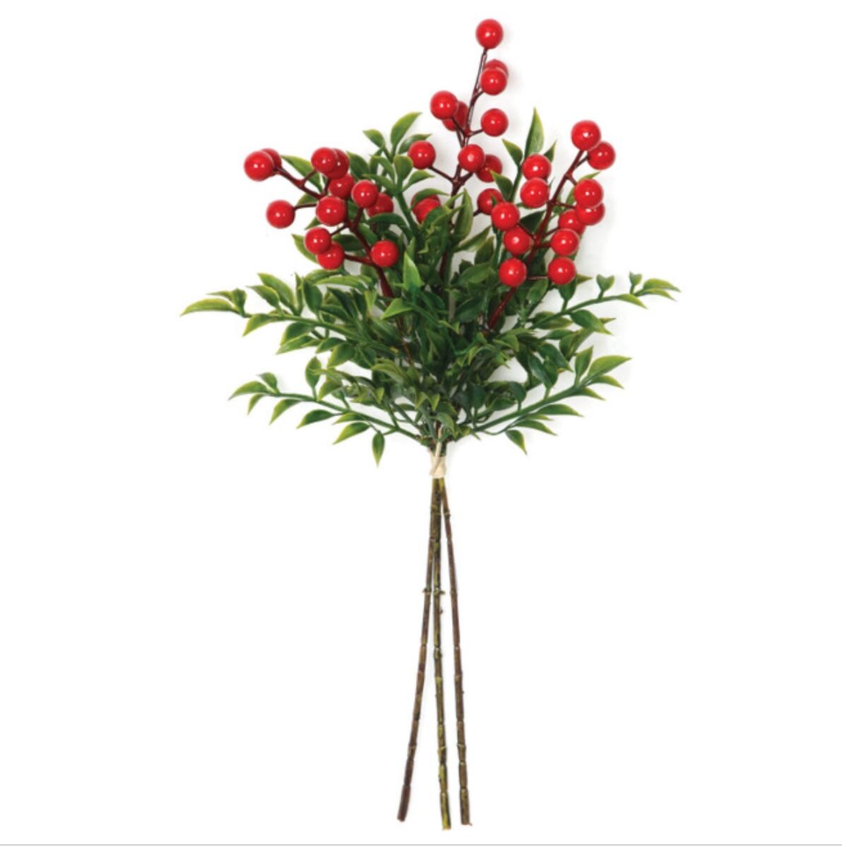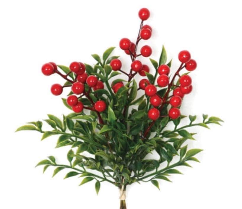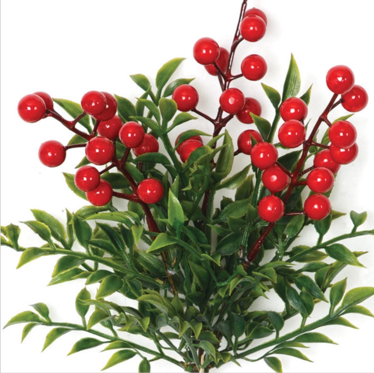These faux Berry Leaf Stems come in a bundle of 3 and are attached to a woodsy-like stem. They can be easily split apart to be used in a variety of holiday DIY projects. Use as a vase filler, tree filler, to make a wreath, add to a garland or consider adding them to one of our wreath bases to add a pop of color!