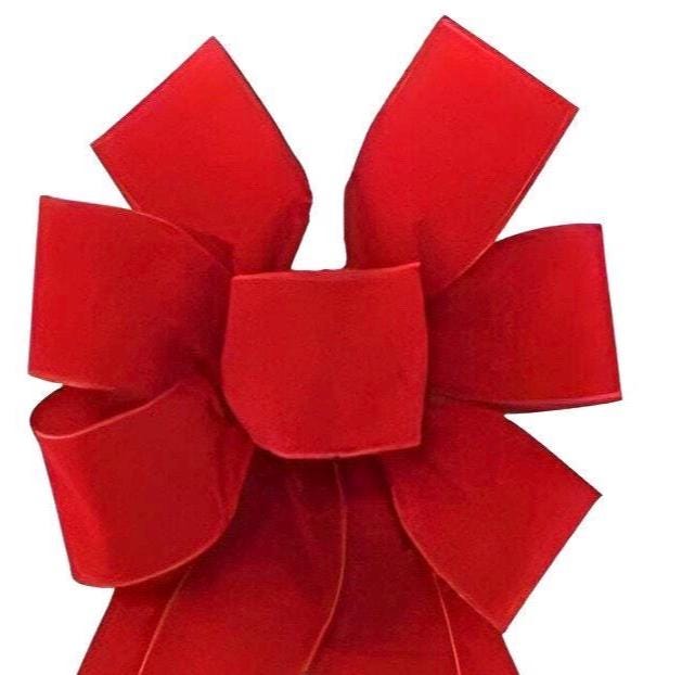 This Red bow is made from high quality, wired velvet ribbon, features 7 loops, four tails (two on each side) and is great for use as a tree topper, decorating wreaths, front doors and a variety of other holiday home decor projects! Comes ready to hang with a loop and is packaged in its own individual box for safe shipping and future storage.