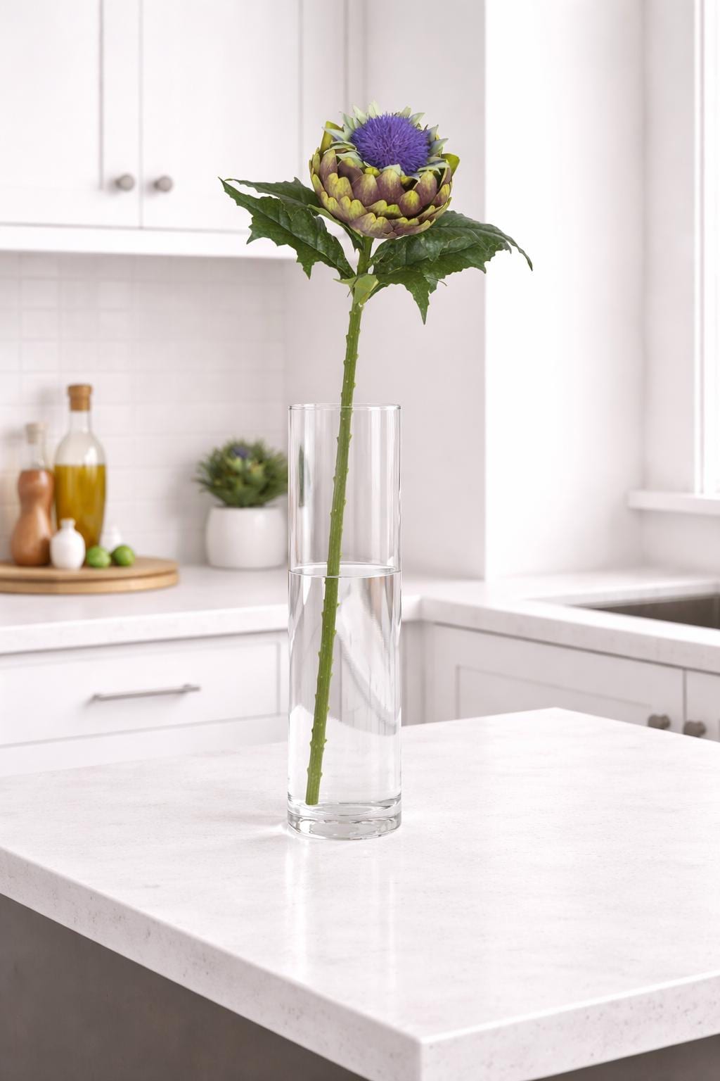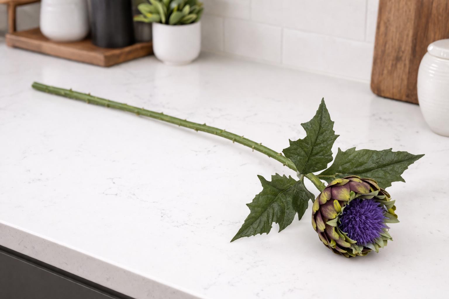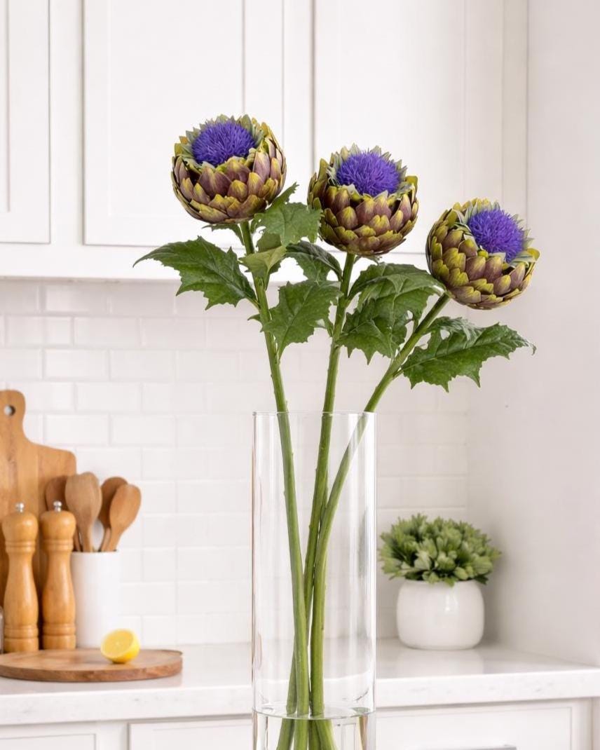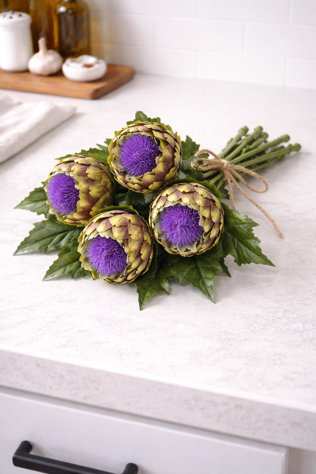 Perfect for floral arrangements, kitchen decor, farmhouse styling, or modern centerpieces, this faux artichoke bloom brings natural charm without maintenance. The detailed petals and lifelike leaves make it a standout filler or focal stem in bouquets and seasonal displays.