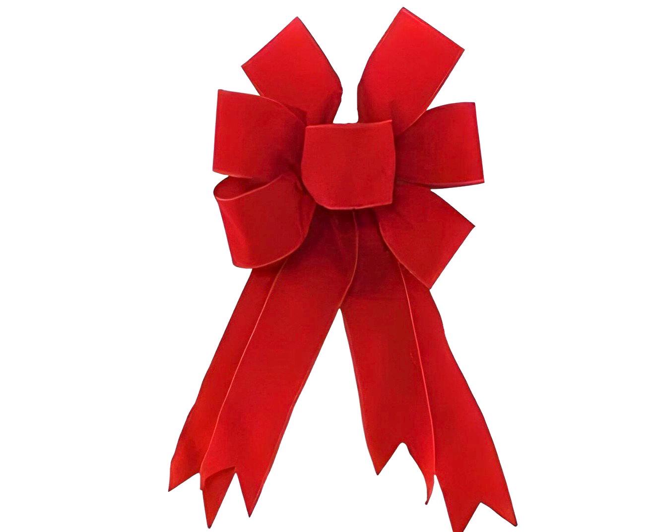 This red bow is made from high quality, wired velvet ribbon, features 7 loops, four tails (two on each side) and is great for use as a tree topper, decorating wreaths, front doors and a variety of other holiday home decor projects! Comes ready to hang with a loop and is packaged in its own individual box for safe shipping and future storage.