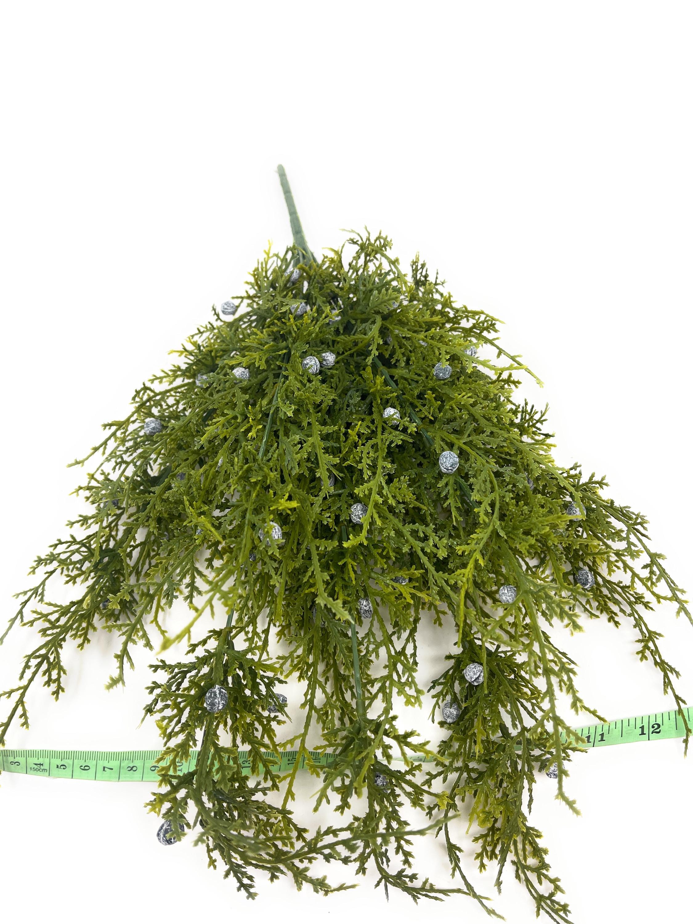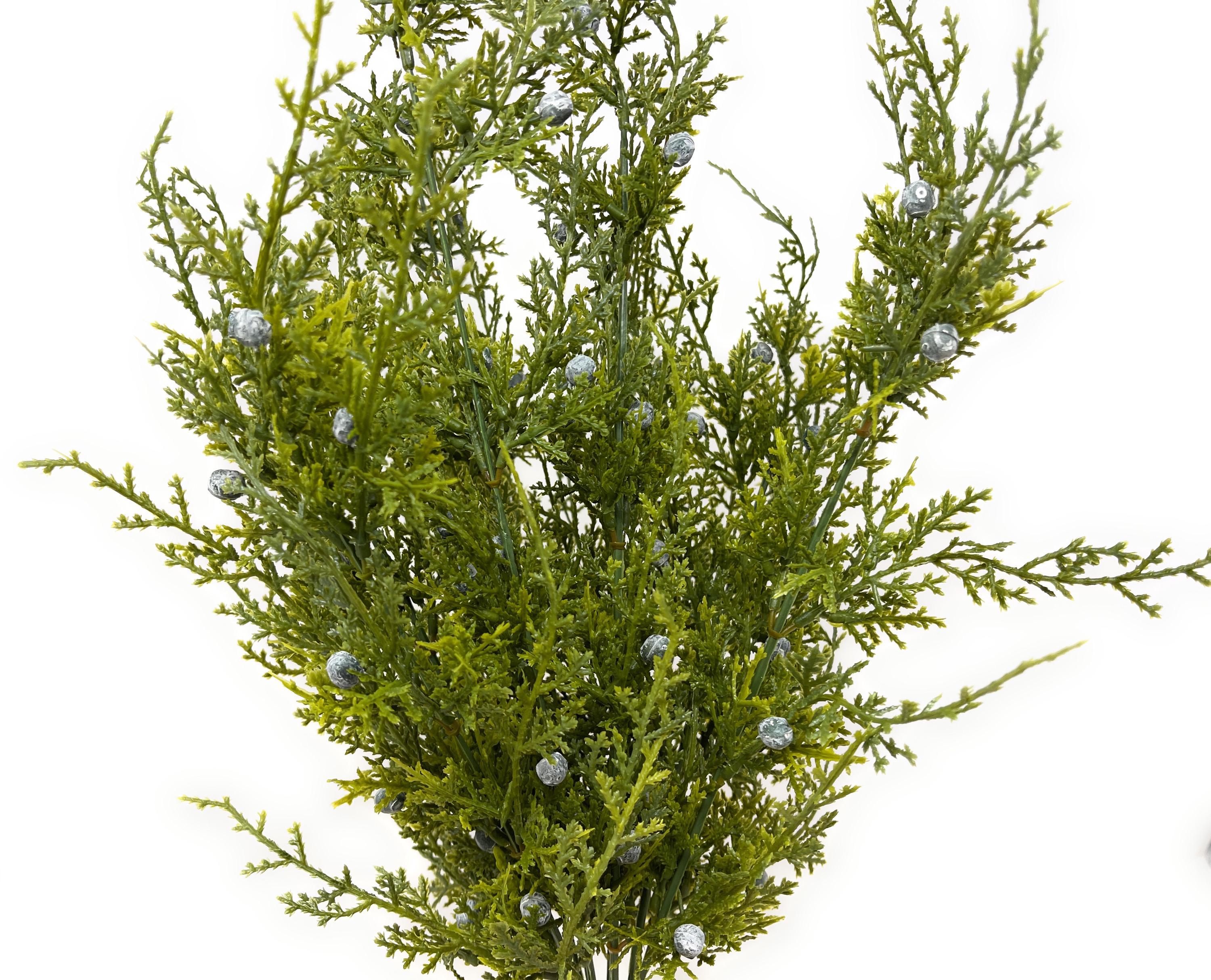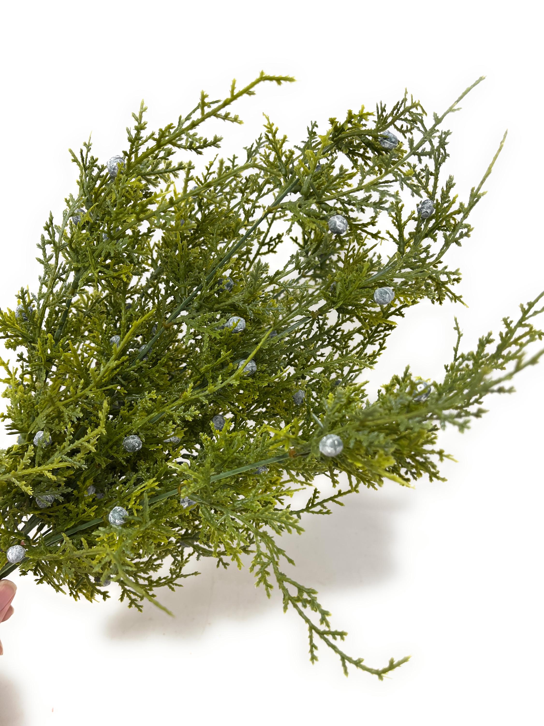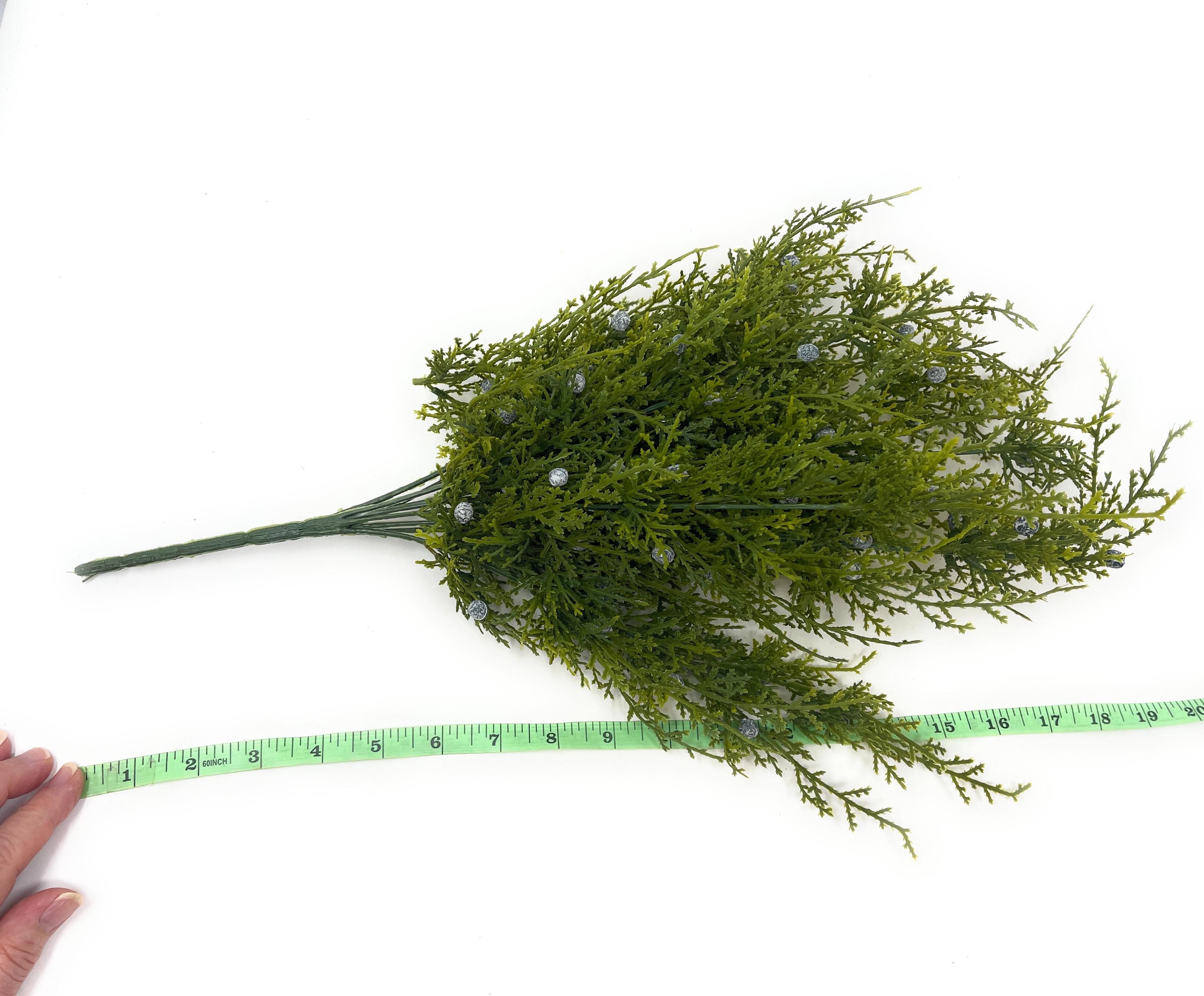 This is a very full and high quality artificial Juniper Greenery Bush in 2 tone Green with small Juniper berries in a grayish blue color. It is great for Winter Christmas wreaths, garlands, planter or planter fillers, floral arrangements or any DIY holiday decorating projects!