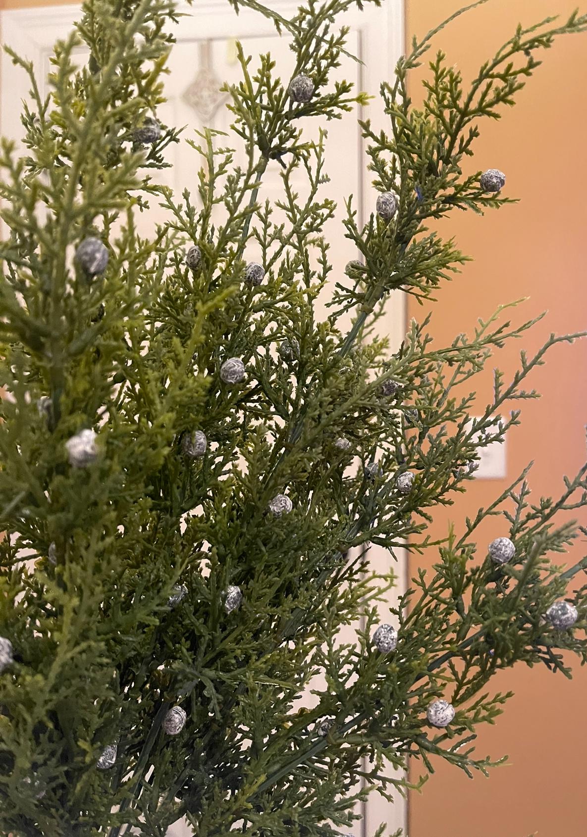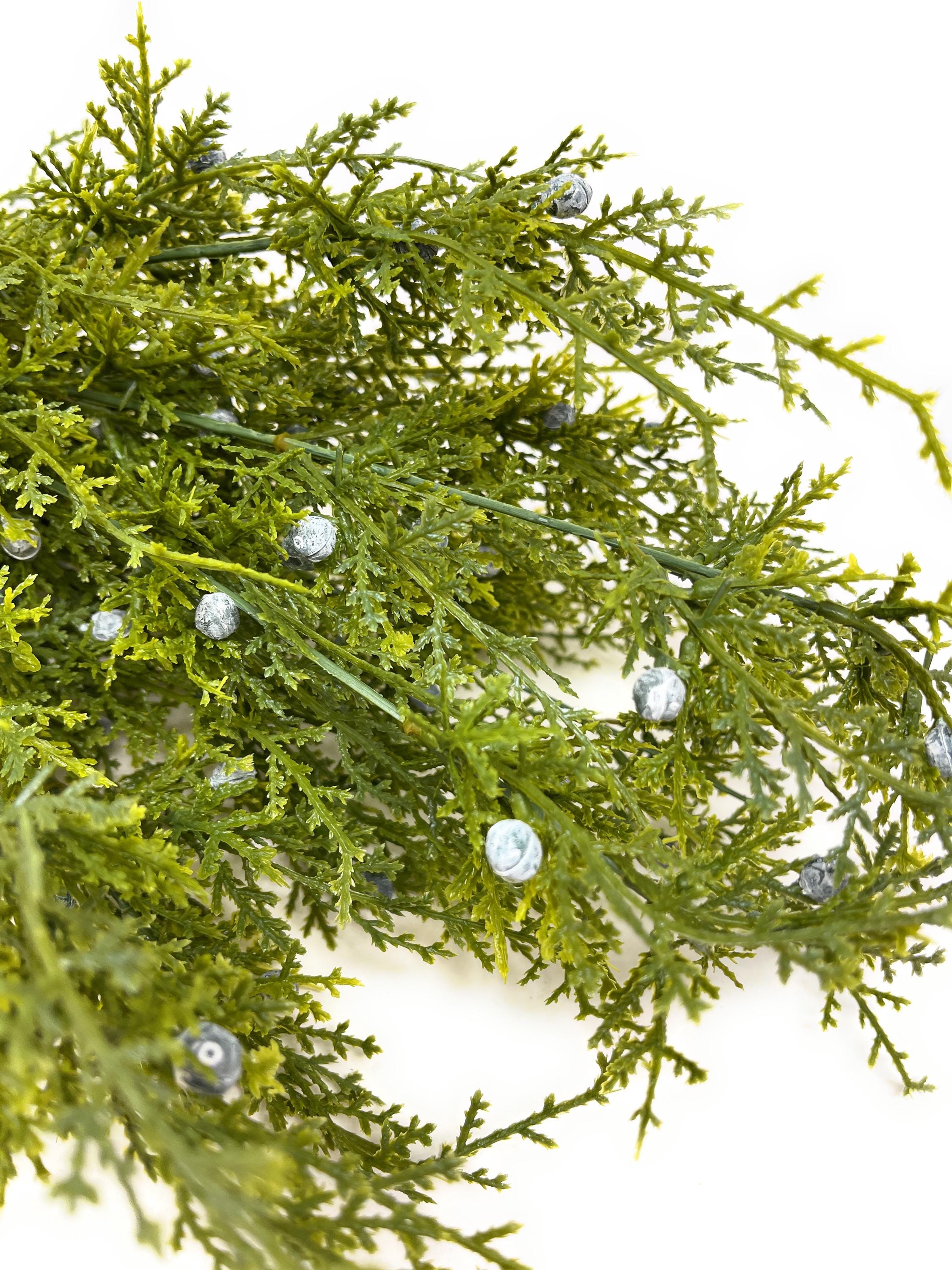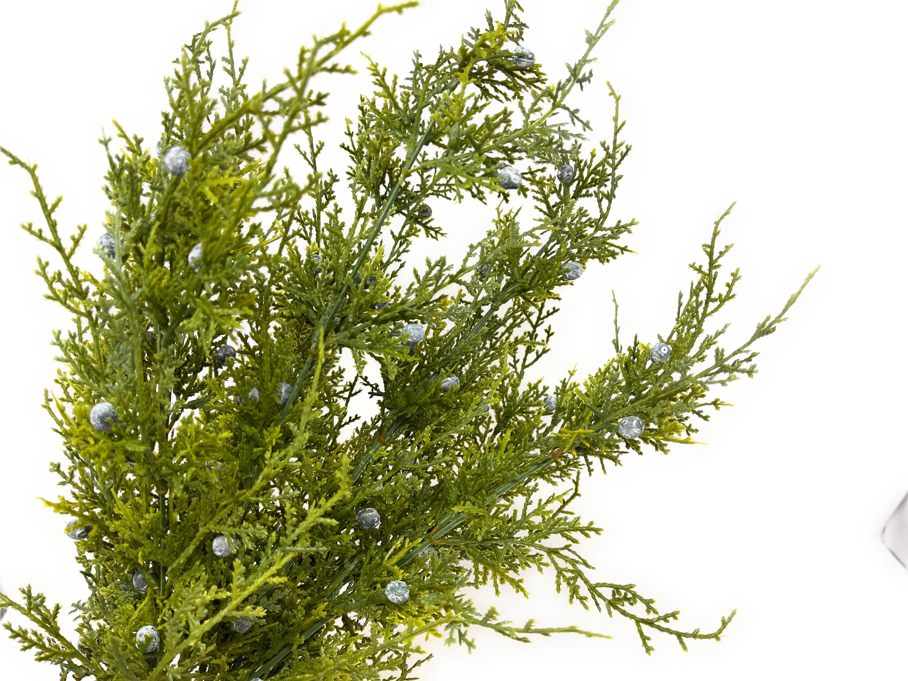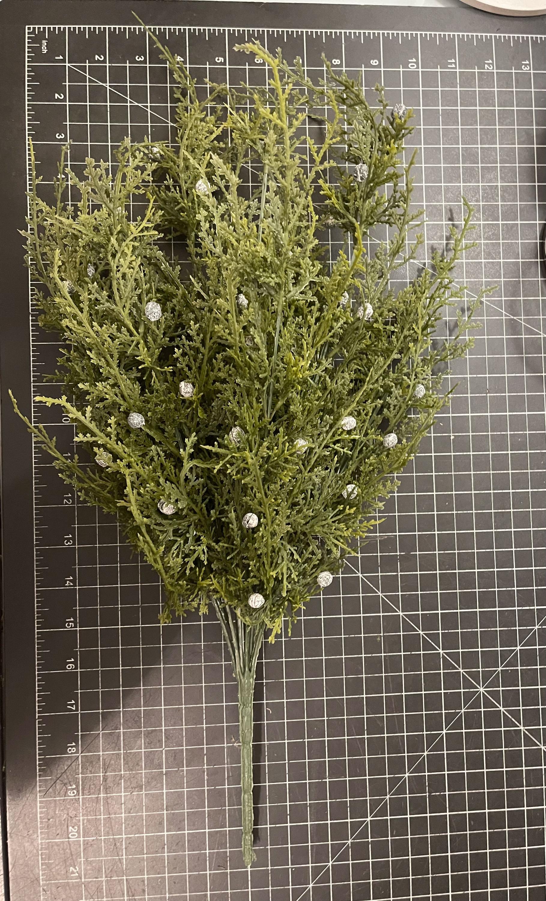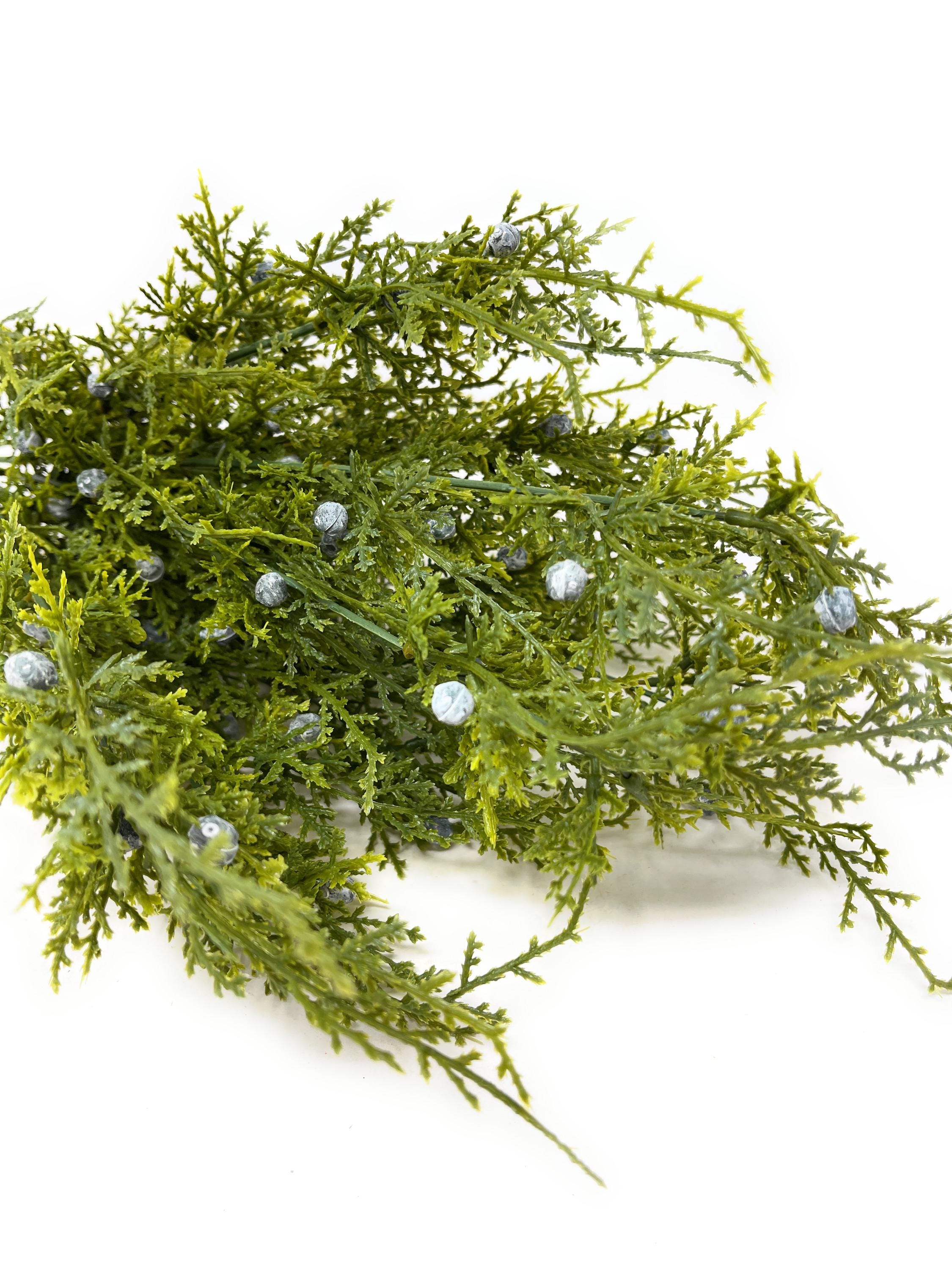 This is a very full and high quality artificial Juniper Greenery Bush in 2 tone Green with small Juniper berries in a grayish blue color. It is great for Winter Christmas wreaths, garlands, planter or planter fillers, floral arrangements or any DIY holiday decorating projects!